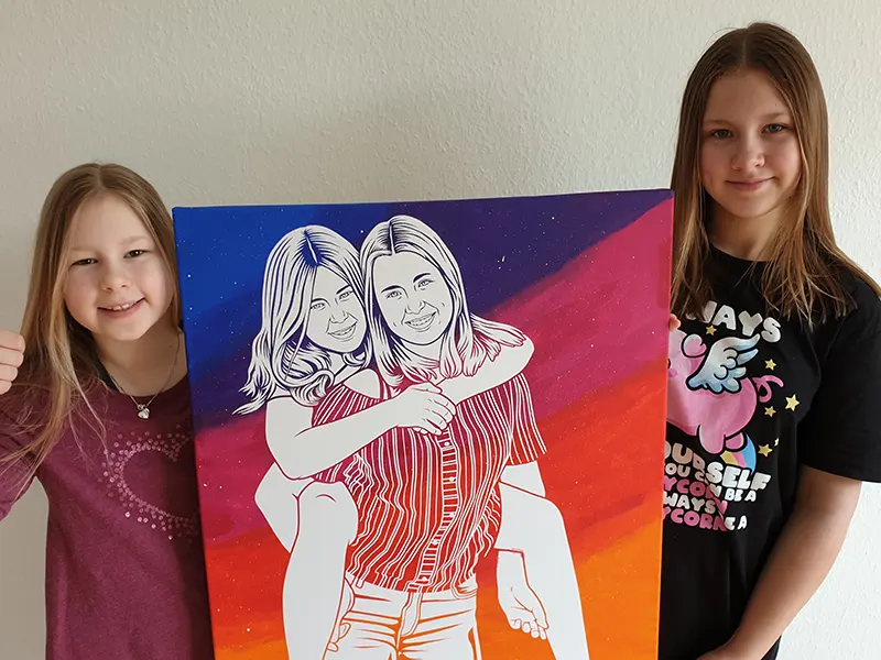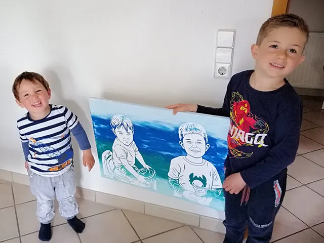 „Ich habe es meiner Schwester und meinen Neffen geschenkt und es zusammen mit Ihr bemalt. Sie findet, dass es ein sehr schönes Geschenk ist und auch das Ergebnis ist sehr zufriedenstellend. Es hat eine Menge Spaß gemacht, die Leinwand mit der Familie zu bemalen.“