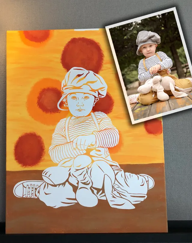 Ran an die Farben und gestalte dein eigenes Kunstwerk. Überrasche deine Liebsten mit einem personalisiertem Portrait. Wähle deine Lieblingsfarben, male deine Lieblingsmuster und zeige uns dein Ergebnis. Ganz einfach dein Foto bei uns hochladen, Leinwandgröße und Farben auswählen und voller Vorfreude auf deine Bestellung warten.