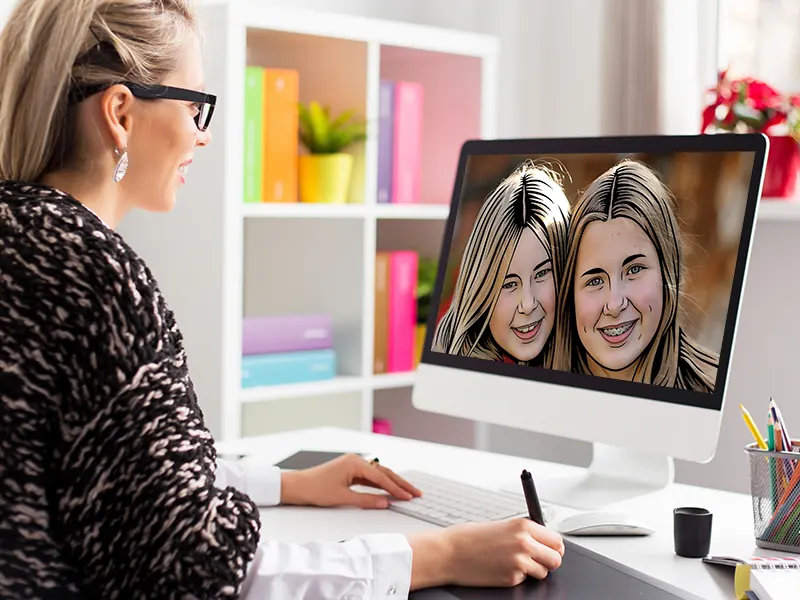 Wir zeichnen dein Foto auf dem Computer nach – mit Liebe zum Detail und in echter Handarbeit.