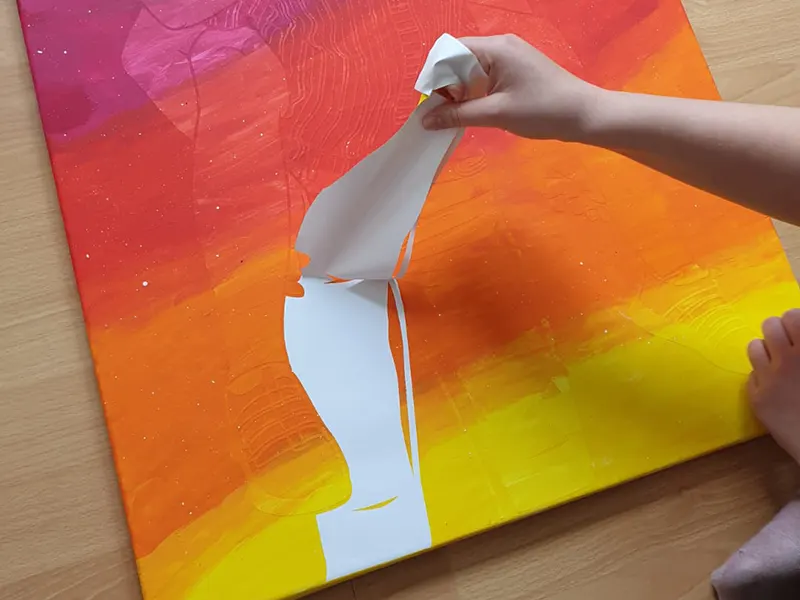 Fertig gemalt? Dann lass dein Kunstwerk eine Weile trocknen und ziehe dann mit einer geeigneten Pinzette vorsichtig die Folie ab.